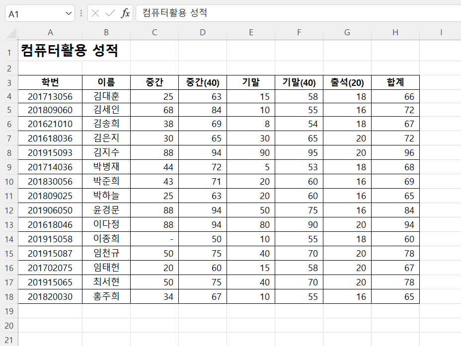 [소계], [합계], [요약] 이런 행들은 거의 표의 끝 쪽에 있는 경우죠.