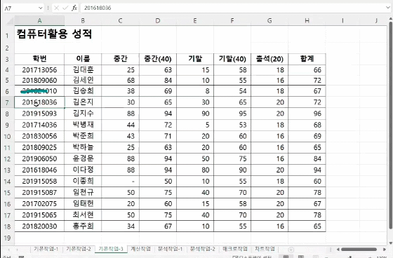 그럼 이 단축키를 이용해서 엑셀의 끝이 어딘지 이동해볼게요.