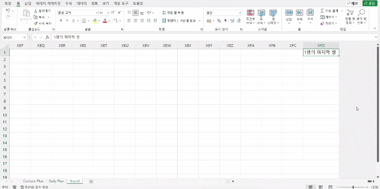 A1부터 시작하여 XFD1048576 셀이 시트의 마지막 셀이네요.