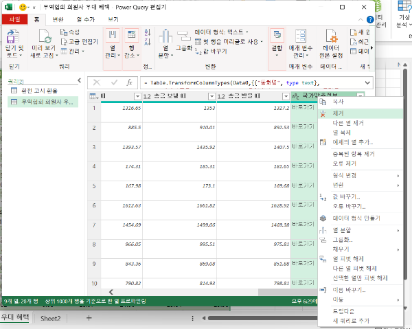 이 쿼리에서 필요없는 정보가 있거나 수정하고 싶은 정보가 있다면 쿼리 편집기를 이용해 다양한 작업들을 할 수 있습니다.