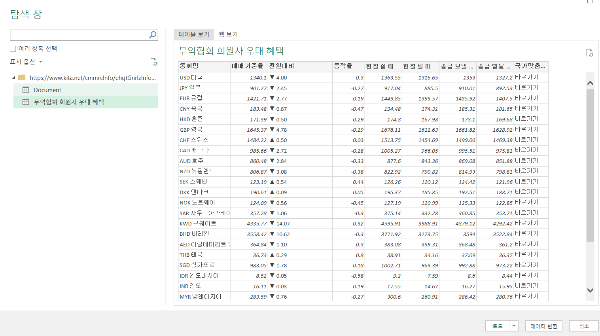 이 쿼리는 여전히 웹주소에 연결되어있는 상태이기 때문에 환율정보가 바뀌면 업데이트가 됩니다.