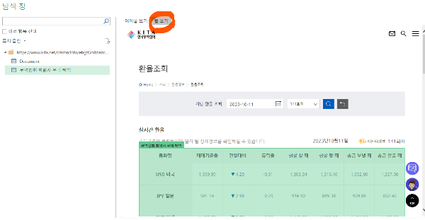 저는 한국무역협회의 실시간 환율정보를 이용하겠습니다.