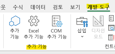 리본탭에서 [추가기능] 버튼을 찾아주세요.
