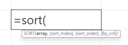 =SORT(array,[sort_index],[sort_order],[by_col])
