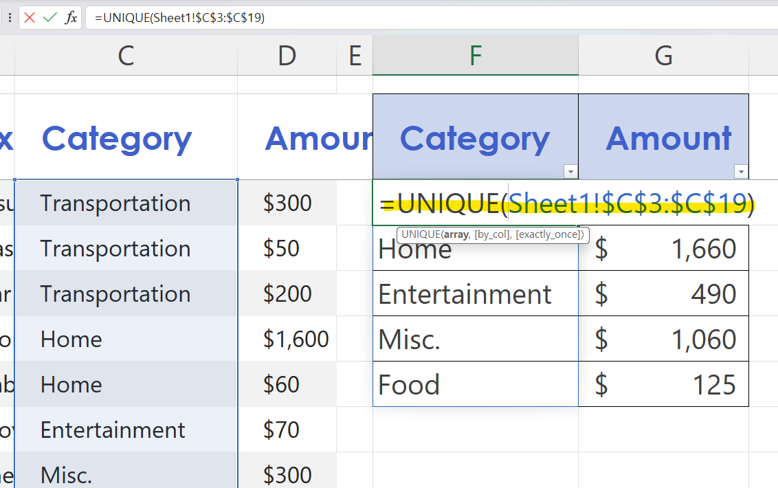 [함수] 고유값을 추출하는 UNIQUE함수와 드롭다운 사용법