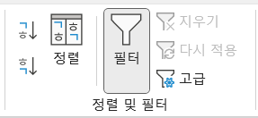 엑셀에서는 역삼각형 버튼이 있는 필터기능이나 정렬을 주로 사용합니다.