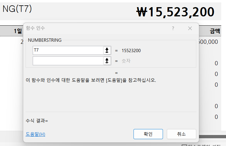 NumberString함수를 이용하면 셀이 2개 이상은 필요합니다.