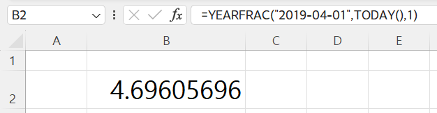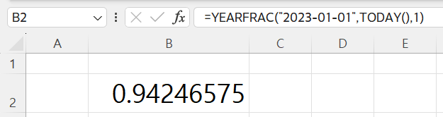 =YEARFRAC(start_date, end_date, [basis])