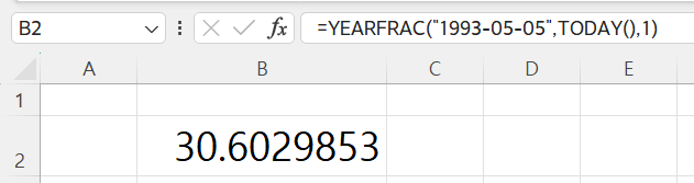 이번에는 yearfrac함수로 나이를 계산해볼까요?