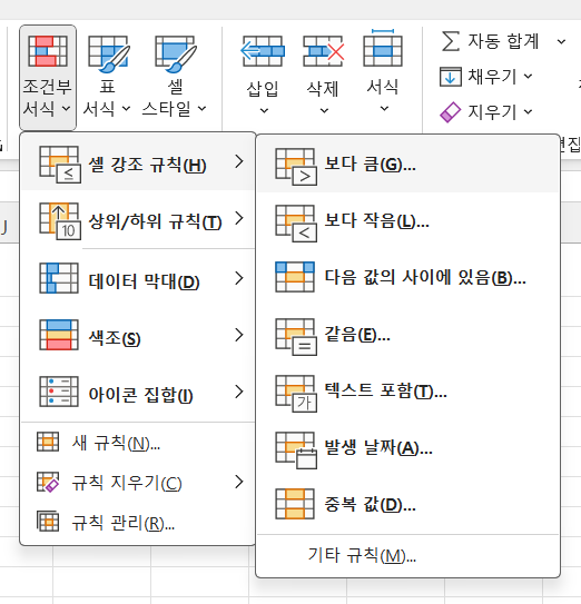 물론 반대로 0보다 큰 숫자를 가진 셀을 강조해주는 것도 옳은 방법입니다.
