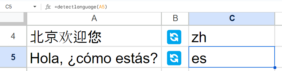 이 함수를 이용해서 언어를 감지한 후 해당 언어의 2음절 코드를 수집한 후에 googletranslate함수를 이용하면 더욱 빠르고 간편하게 사용할 수 있습니다.
